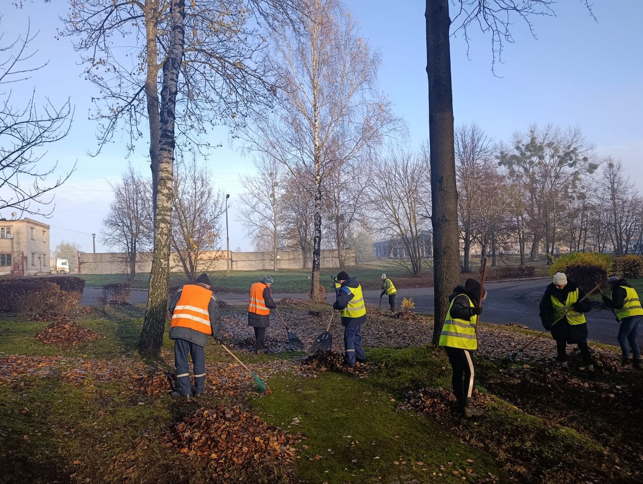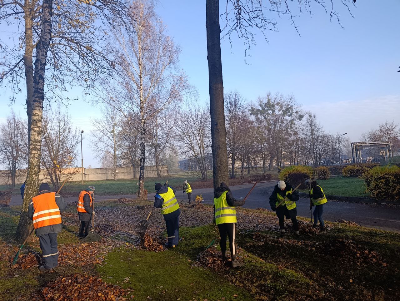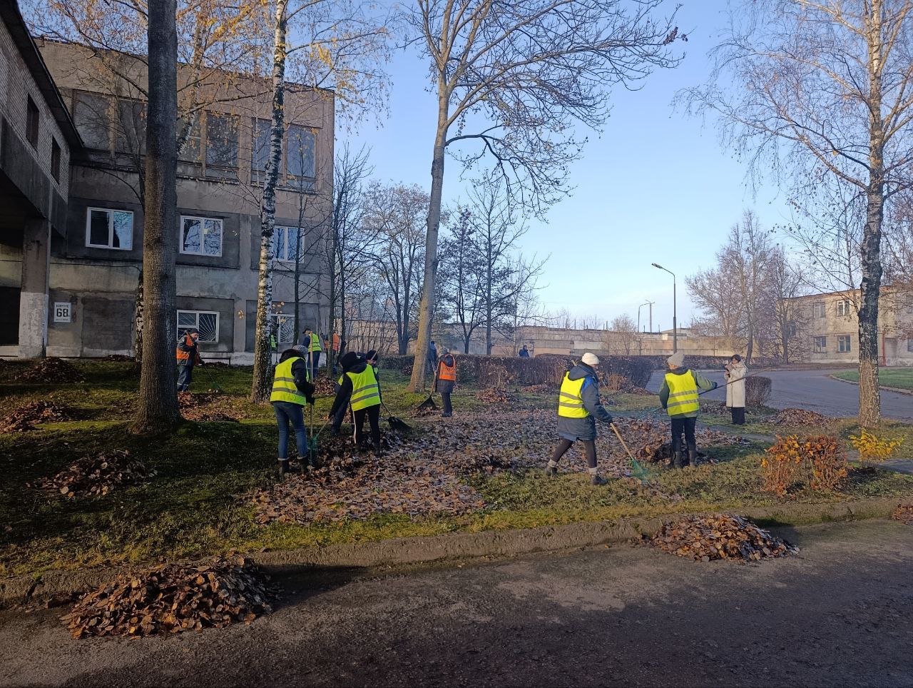 Уборка листвы на территории ОАО"Беларусьрезинотехника" в рамках санитарного дня.